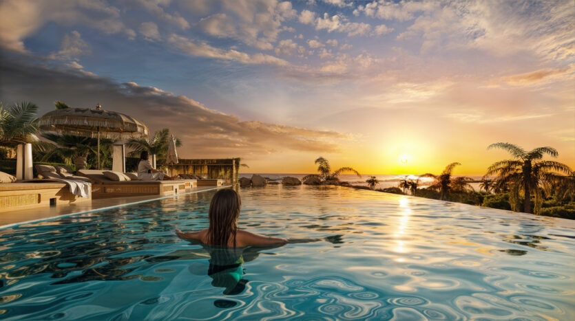 • Rooftop Infinity Pool & Cocktail Bar: Panoramic sunset ocean views.