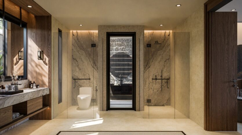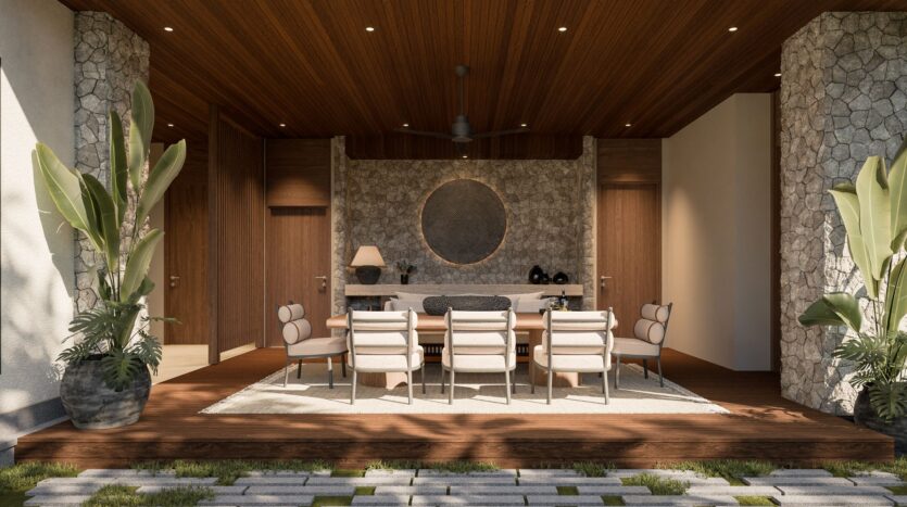 - Minimalist yet rich in detail, with natural tones and Balinese accents