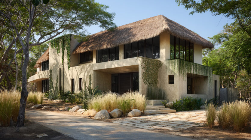 Full off-grid capabilities: solar/wind energy, rainwater harvesting, and on-site waste recycling.
